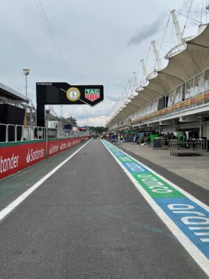 A visita ao Autódromo de Interlagos (SP), apenas dias antes da realização do GP do Brasil, começou pela exclusiva área do F1 Paddock, localizado atrás dos boxes. Trata-se do espaço onde trabalham as equipes de corrida, imprensa, promotores, patrocinadores e equipes de gestão e staff da F1 e da FIA. A parceria entre a FIA e a DHL é uma das mais duradouras do esporte, com 21 anos de colaboração.