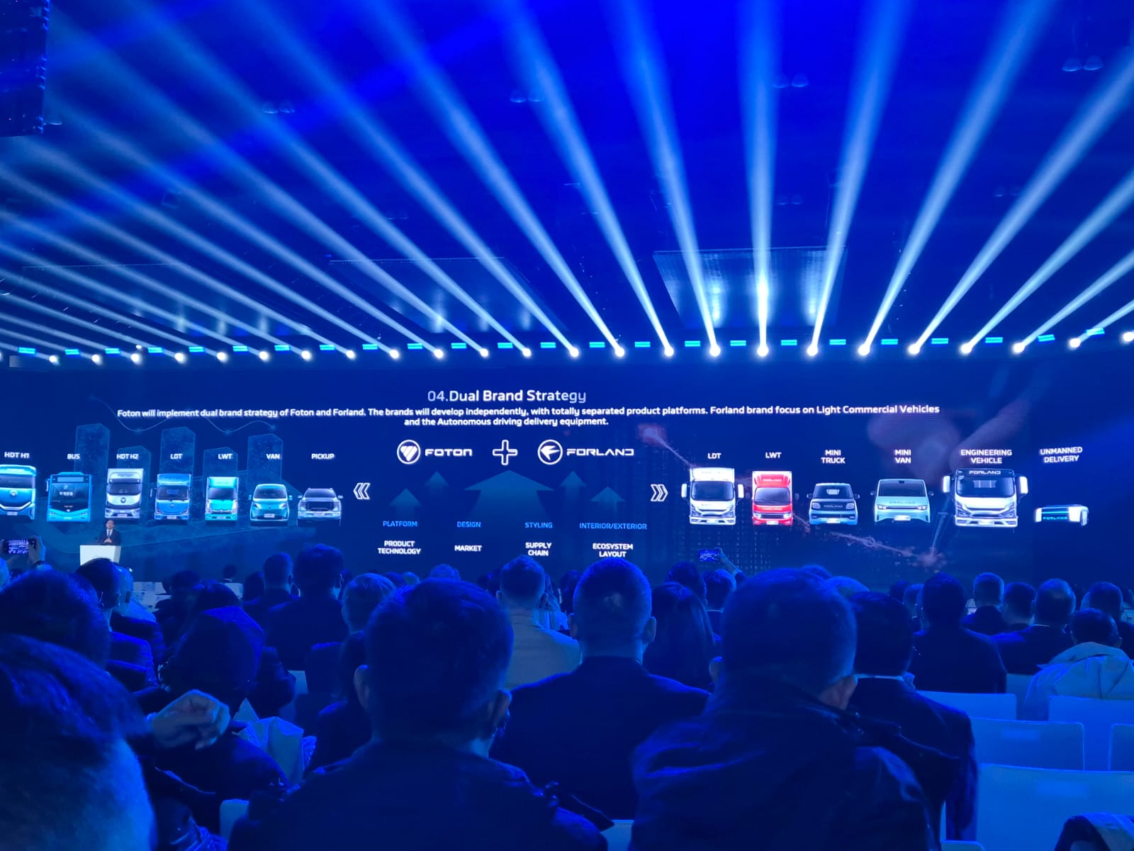 A Foton investe em veículos elétricos, híbridos e hidrogênio, além de tecnologias de direção inteligente, como navegação HWP e cabine inteligente com IA, funcionando como “plataforma de produtividade móvel”.