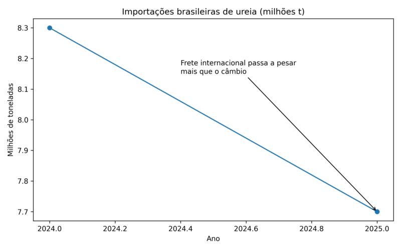 Segundo Everton Minatti, gerente de Operações da Usiquímica, o frete internacional ganhou protagonismo na formação de custos. “Hoje, além do câmbio, o frete exerce influência direta e, em muitos momentos, superior à do dólar, especialmente quando as origens envolvem longas rotas, como a Ásia. Isso reduziu a previsibilidade do mercado e encurtou significativamente os horizontes de planejamento”, afirma.