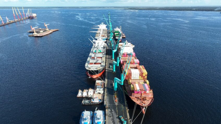 Em 2025, o terminal movimentou mais de 300 mil TEUs, com alta de dois dígitos, consolidando Manaus como hub relevante para cabotagem e distribuição de cargas na região Norte.