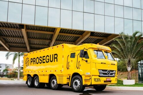 Procurada pela reportagem, a empresa não revelou a marca dos veículos, embora imagem divulgada pelo banco indique um modelo da Iveco.